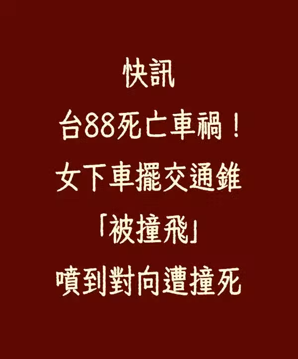 快訊/台88死亡車禍!女下車擺交通錐「被撞飛」 噴到對向遭撞死!