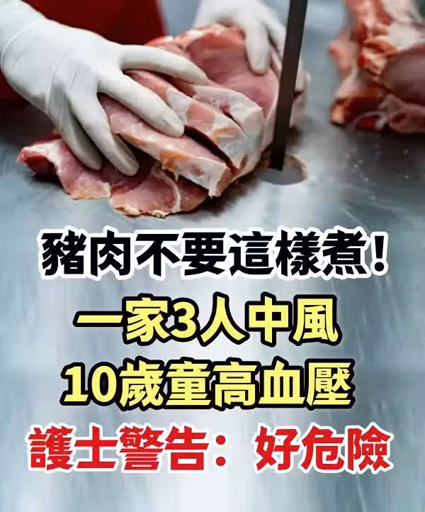 【高血壓/中風/健康飲食】豬肉常見,但也不能亂吃!有台灣護理師分享個案,指有一家人天天吃豬肉,更會用1種煮法食用,結果全家都有高血壓,包括10多歲小孩,並已有2至3個人中風。