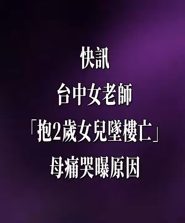 快訊/台中女老師「抱2歲女兒墜樓亡」!母痛哭曝光原因