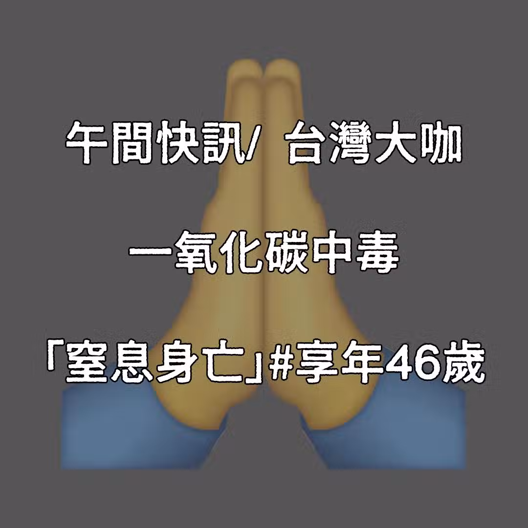 午間快訊/台灣大咖 一氧化碳中毒「窒息身亡」#享年46歲