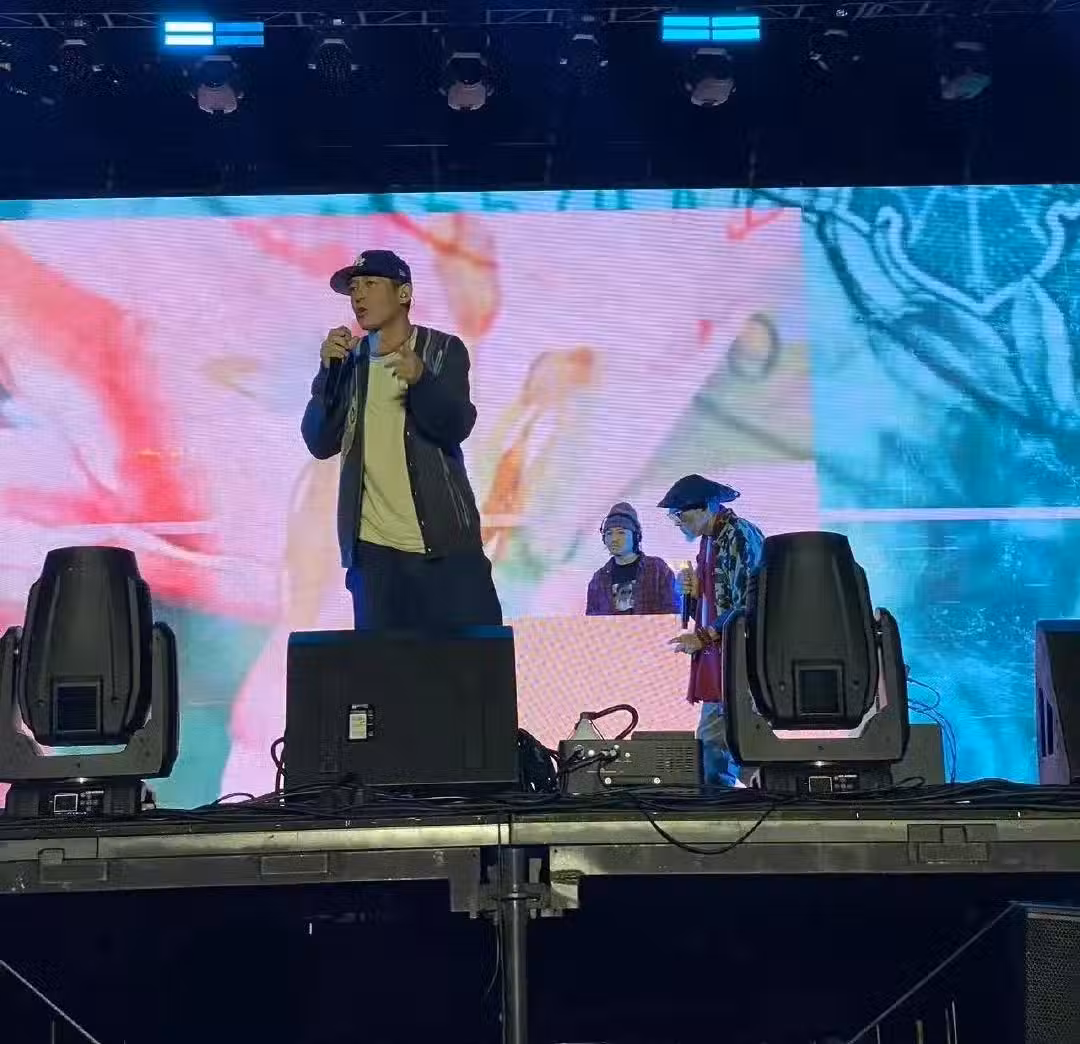陳冠希參加音樂節,和一位日本動作片女星合影,耳朵紅了,看起來很開心