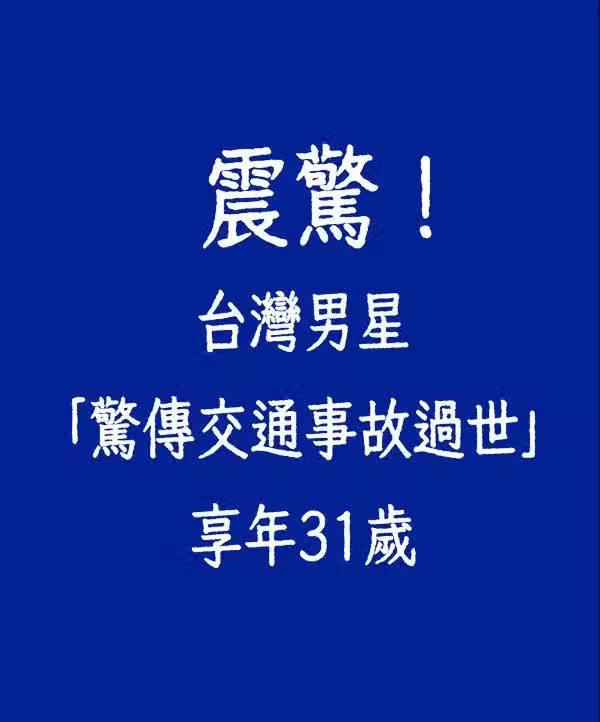震驚!台灣男星「驚傳交通事故過世」享年31!
