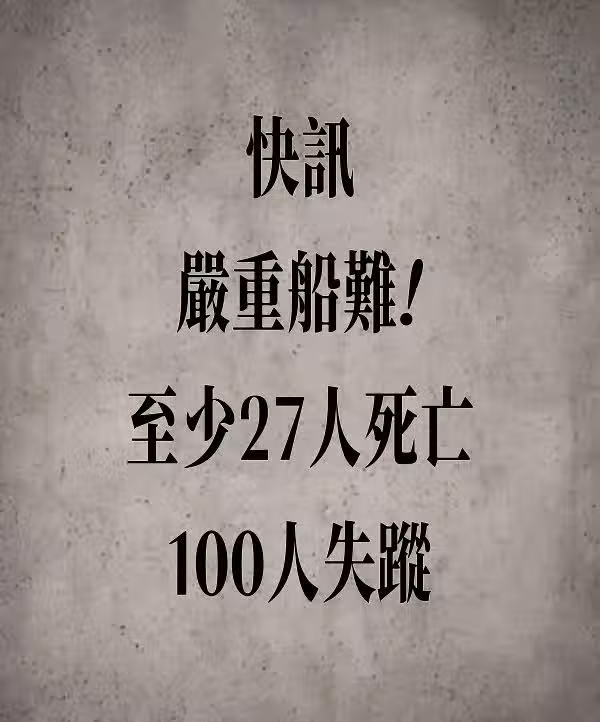 快訊/嚴重船難 至少27人死亡、100人失蹤…