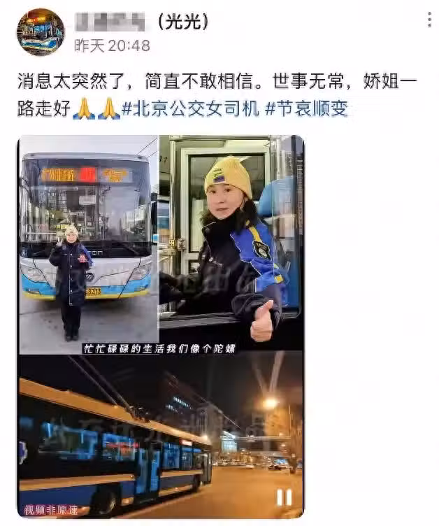 據了解,嬌姐本名劉黛嬌,是北京42路公車駕駛員,她前幾年在影片帳號上直播過,這2年不玩了,一些網友都認識她,坐過42路公車的當地人,更是對嬌姐十分熟悉,聽到她去世的噩耗,都大吃一驚,真就太可惜了。