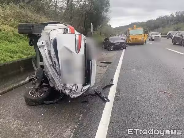 初步了解,林姓男子(29歲)當時駕駛黑色小客車沿著國道向南行駛,行經事故路段時,疑似變換車道不當,擦撞廖男(40歲)駕駛的白色小客車,因此造成廖男座車翻覆。