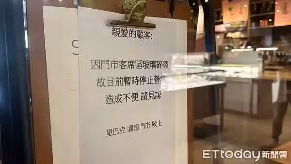 意外發生時男子撞擊到大樓外牆的照明設備,導致燈座完全斷裂,隨後又撞上星巴克的玻璃,造成玻璃碎裂。