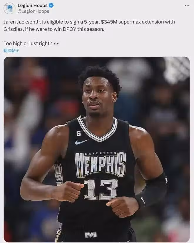 3J有資格簽5年3.45億,但灰熊給不給,又是另外一回事。想想獨行俠為何交易東契奇,就是因為捨不得給東子3.45億的超級頂薪。連東契奇都拿不到,3J憑什麼?除非灰熊管理層送走莫蘭特,接下來圍繞3J建隊,才會給他超級頂薪。