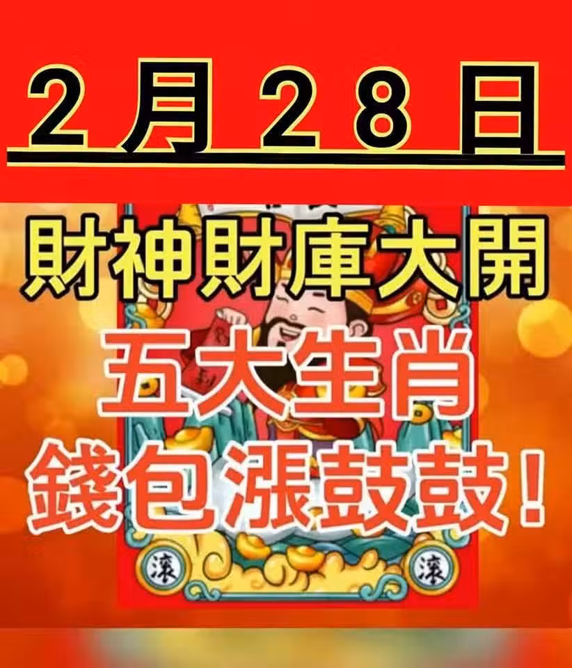 2月28日 財神財庫大開 「 五大生肖 」 荷包漲鼓鼓。