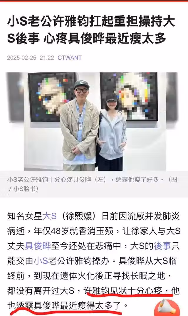 他說從大S臨終到現在為大S尋找長眠之地,具俊曄一直在大S身邊。