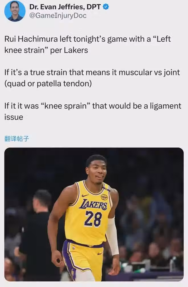 不打了!左膝拉傷暫時退出NBA!這可是湖人的首發主力