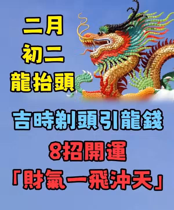 2025年3月1日為農曆二月初二「龍抬頭」, 古代中國是以農立國,人們對農業非常重視,民間認為龍是吉祥之物,和風化雨的主宰,而農曆「二月二」這天是龍欲升天的日子。