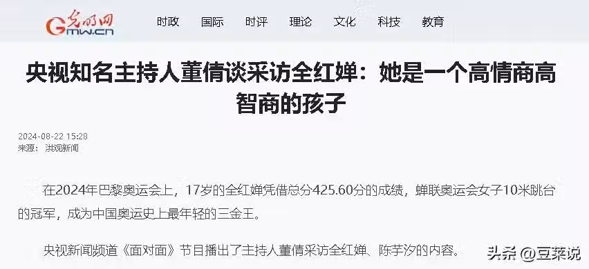 參考資料:光明網——央視知名主持人董倩談採訪全紅嬋:她是一個高情商高智商的孩子