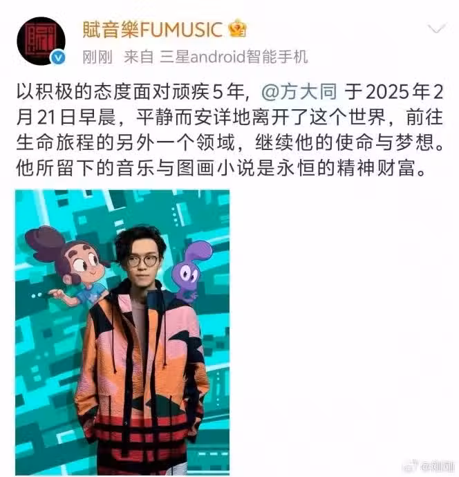 自創音樂品牌證實噩耗 41歲方大同因病去世