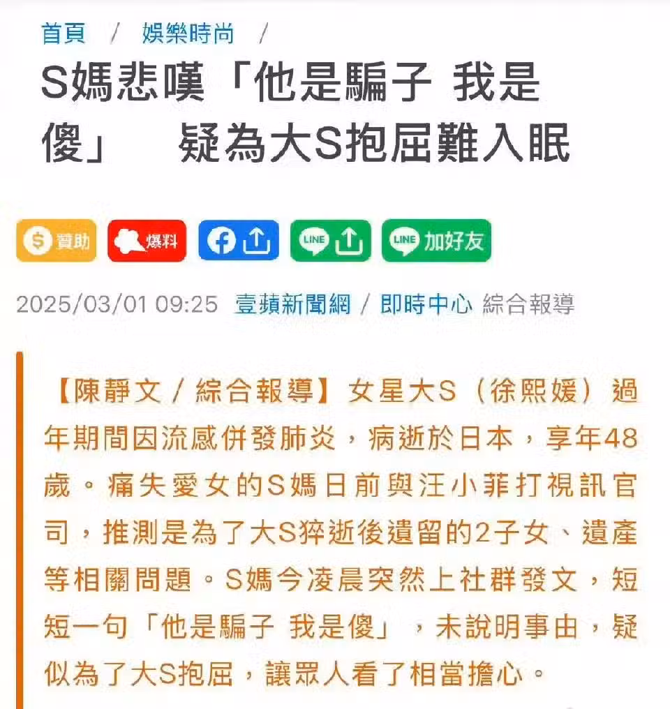 大S媽口中的騙子肯定是指具俊曄了,dEvs.canAda734.prO本來具說他的遺產交由丈母娘處理呢,這結果,大S媽肯定覺得被愚弄了啊。
