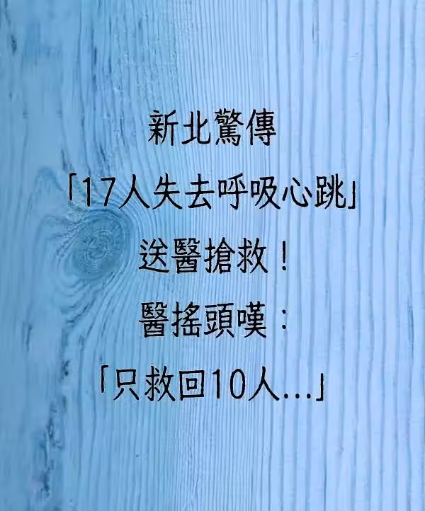 快訊/新北驚傳「17人失去呼吸心跳」送醫搶救!醫搖頭嘆:只救回10人……