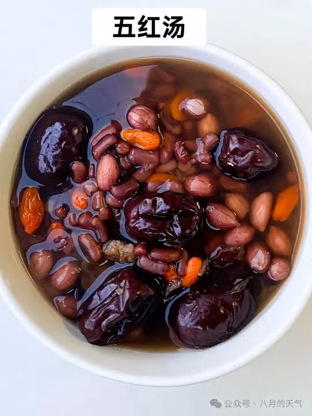 紅棗10顆、紅豆30g、紅枸杞30g、花生30g、紅糖1-2塊