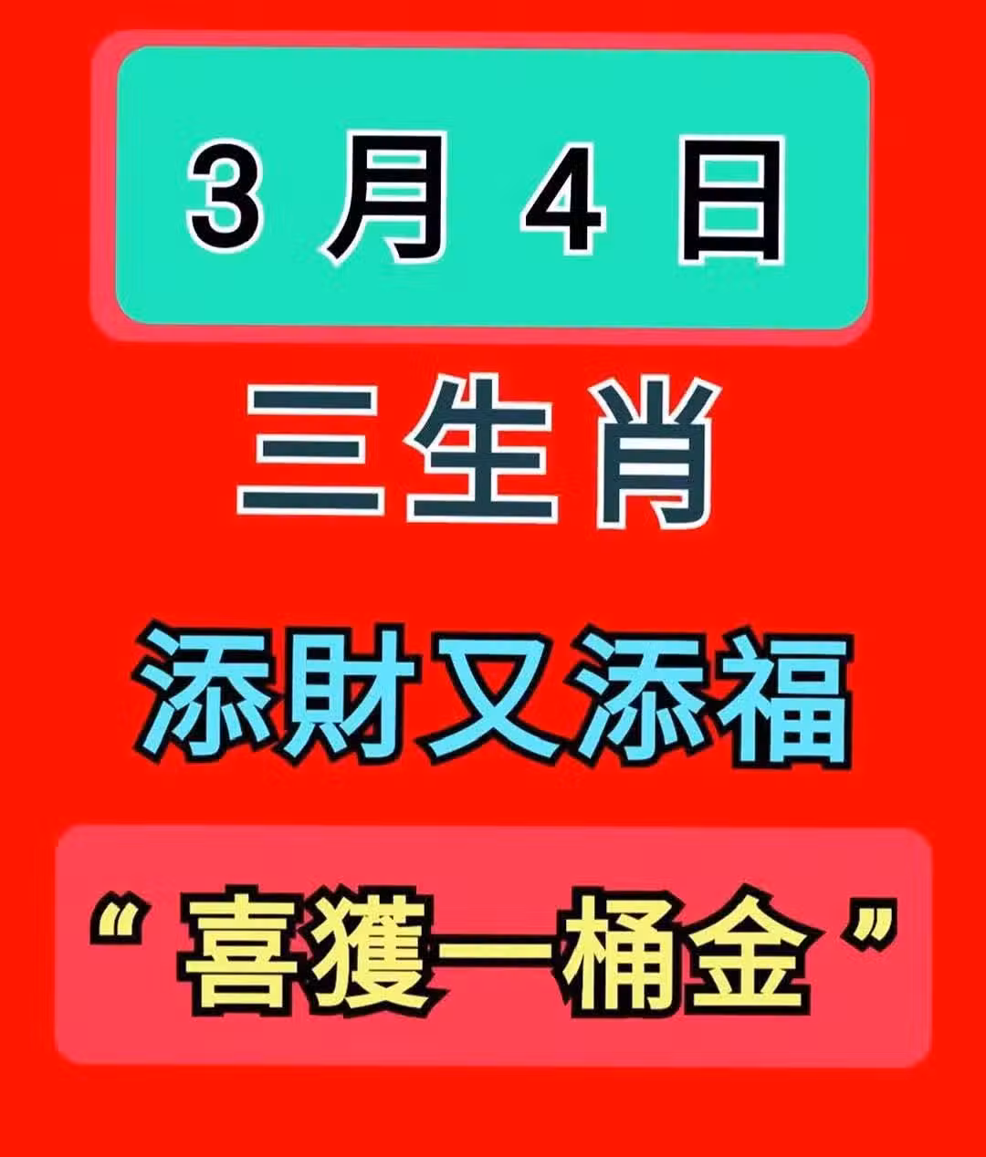 3月4日「 三生肖 」 添財又添福 「 喜獲一桶金 」