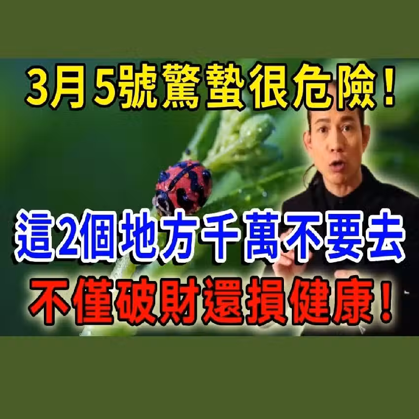 📢 2025年3月5日(農曆二月初六)是「驚蟄」,這一天是陰陽能量轉換的重要時刻,影響全年的運勢!「驚蟄」代表萬物甦醒、能量變動、運勢轉折,這一天如果去錯地方,可能會影響財運、健康、甚至帶來小人與破財危機!