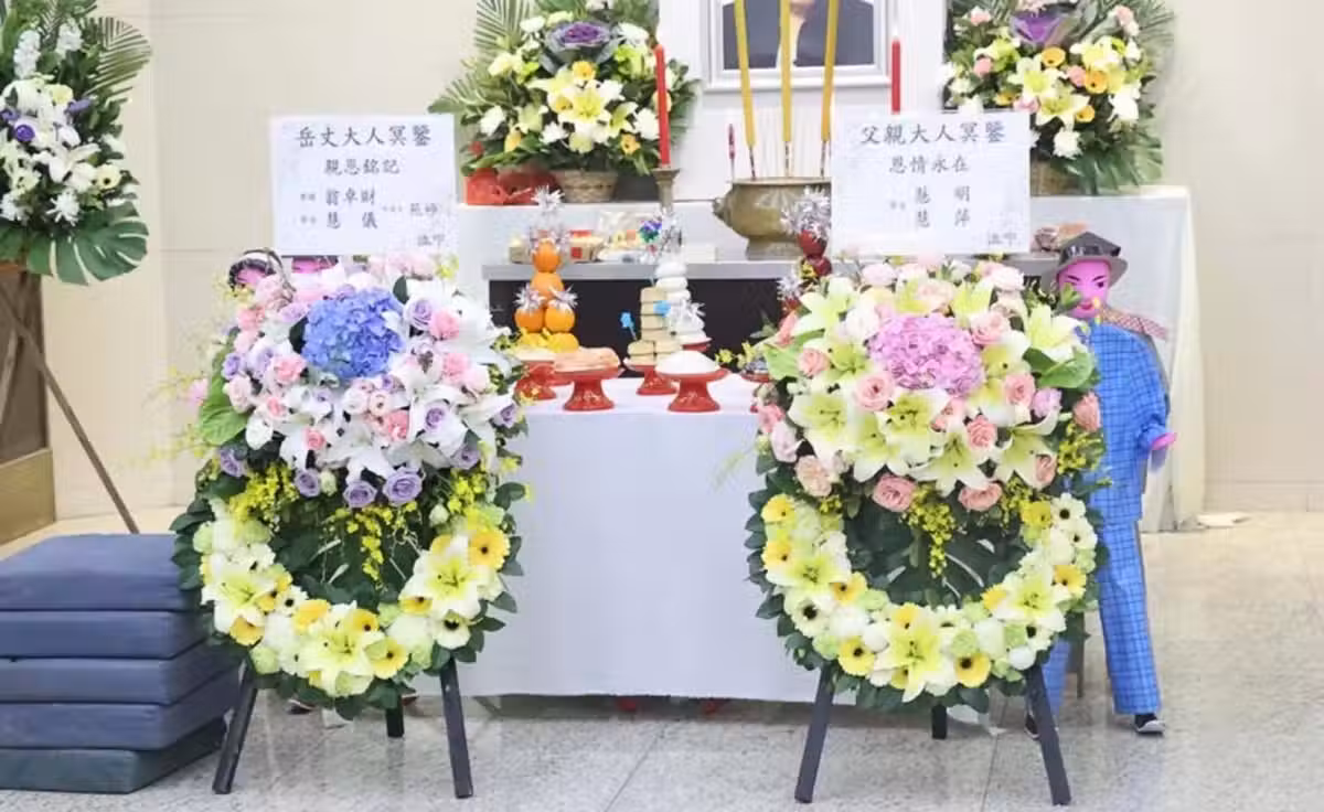 102歲香港知名老戲骨舉辦喪禮,遺照和藹可親,鄭少秋官晶華送花牌