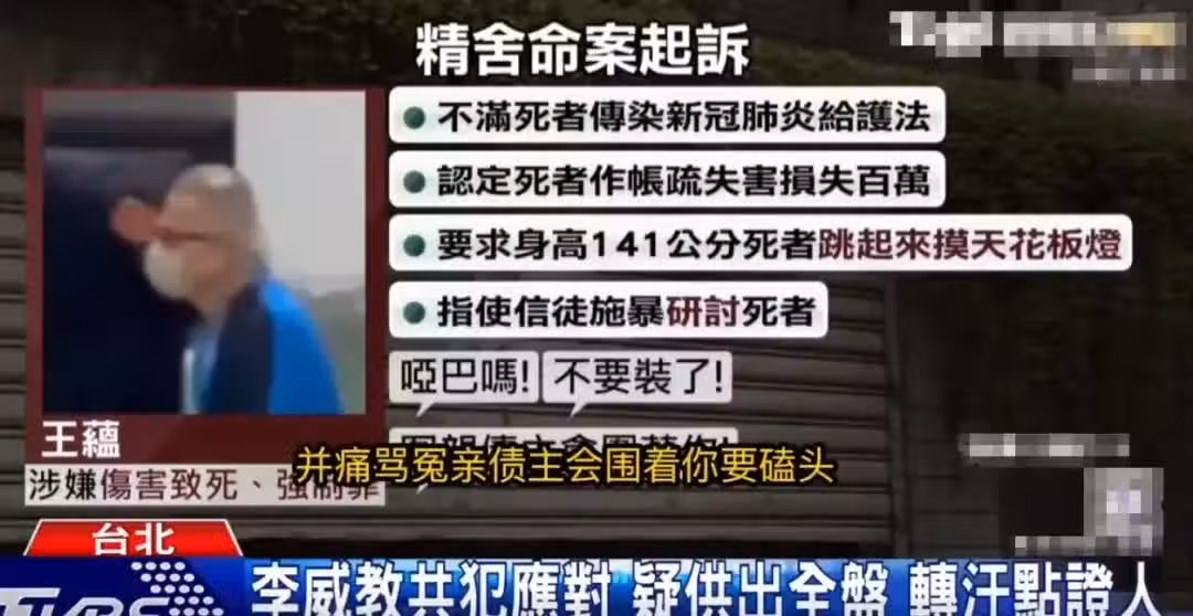 在之前的報道中,台媒稱王蘊不滿蔡女士公私帳目不清實施了懲罰虐待,在最新的報道中還另有隱情。報道稱王蘊還不滿蔡女士生前將肺炎傳染給他的「貼身護法」,且認定對方做帳疏忽害其損失百萬,所以要求只有141身高的蔡女士跳起來摸天花板的燈,痛罵蔡女士要她向冤親債主磕頭道歉。