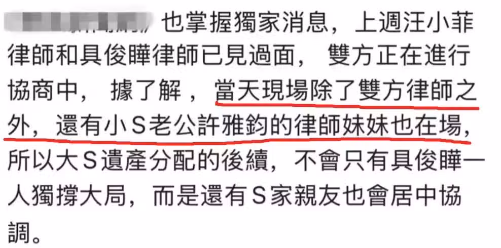 許雅鈞富豪姐姐出動:幫大S打遺產官司,為具俊曄解決房產問題