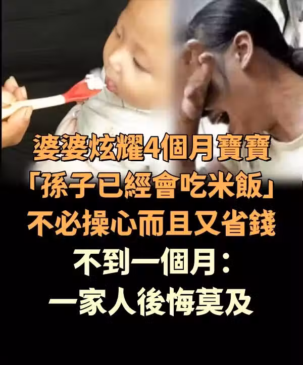 婆婆得意炫耀4個月大的孫子「已經會吃米飯」,直呼不用操心又省錢,沒想到不到1個月,全家人後悔莫及!醫生的一番話,讓他們徹底醒悟……