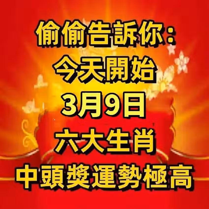 偷偷告訴你:今天開始(3月9號)中頭獎運勢極高的生肖!