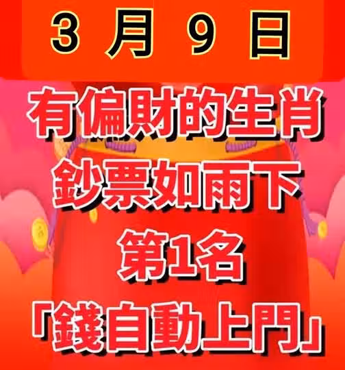 鈔票如雨下!「3月9日」 有偏財的生肖,第1名「財自動上門」!