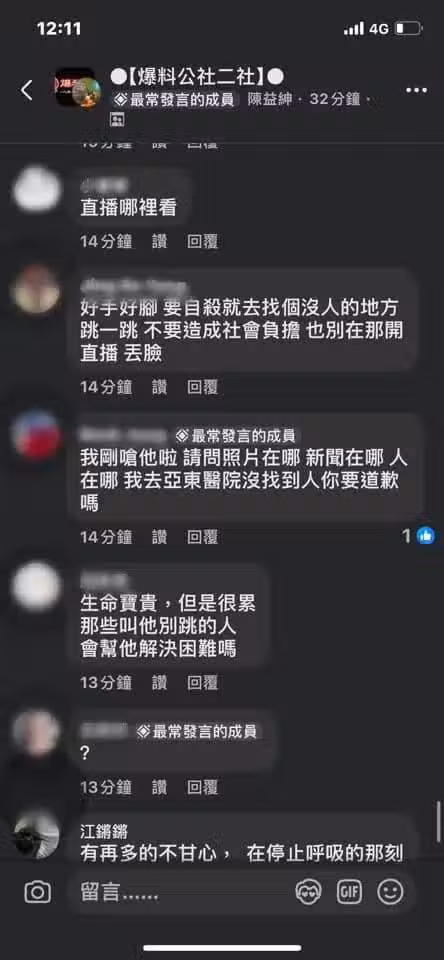 臉書揚言輕.生!台灣大咖直播後「從10幾層高.樓.跳.下」當場身亡.... #好多酸民叫他去.死