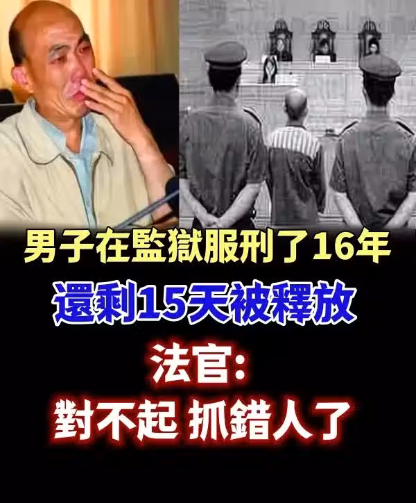 男子在監 獄服刑了16年 還剩15天被釋放 法官: 對不起 抓錯人了