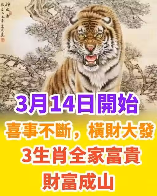 3月14日開始喜事不斷,橫財大發,3生肖全家富貴,財富成山。