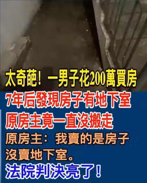 太奇葩!一男子花200萬買房,7年後發現房子有地下室,原房主竟一直沒搬走。原房主:我賣的是房子,沒賣地下室。法院判決亮了!