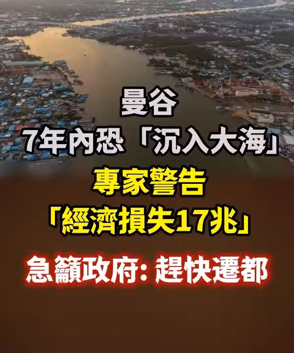 近年來東南亞觀光崛起,今年外國遊客造訪泰國人數已破千萬人大關,而泰國也是台灣人最喜歡旅遊的國家之一,怎料有專家在日前發出警告,指出曼谷恐怕在未來7、8年就會沉入大海!