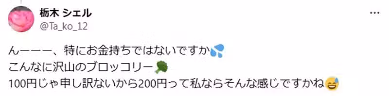 「與其說是自尊心,更應該說是覺得這麼大箱100日圓太扯了,即便投200日圓也很划算,所以抱著感謝的心情吧?」