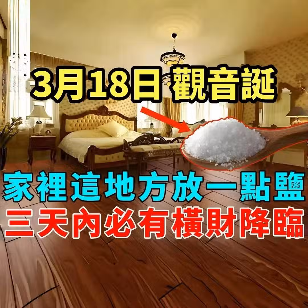 🎯 觀音誕開財運!3 月 18 日這天,把鹽放在這 4 個地方,財運爆發!💰