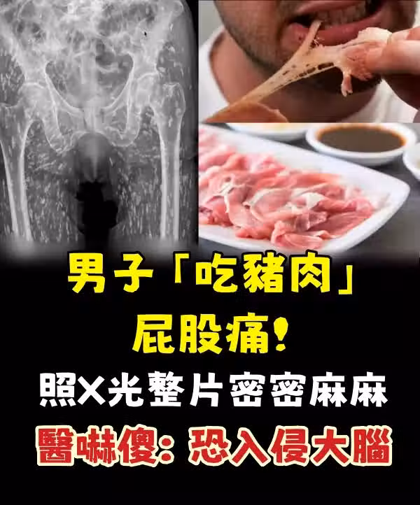 而國外也是如此,美國一名男子因為屁股痛而就醫,醫生在照完X光後當場嚇傻,因為照片顯示男子骨盆腔附近全都是密密麻麻的詭異白點,而這一切都與他所吃下肚的豬肉有關。