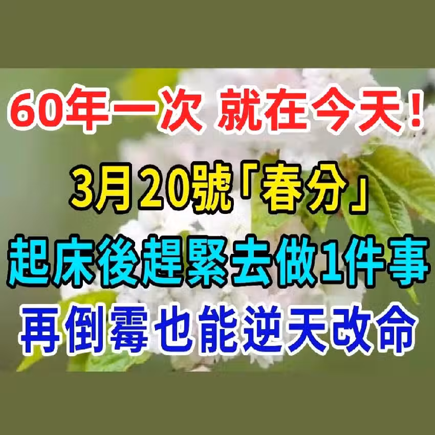 60年一次,就在今天!3月20號「春分」,起床後趕緊去做1件事,再倒霉也能逆天改命!