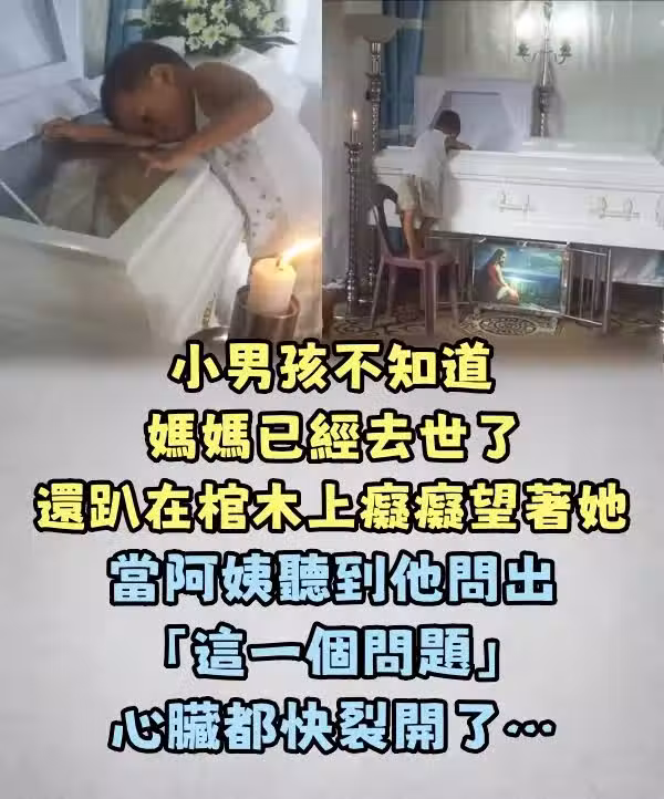 小男孩不知道媽媽已經去世了還趴在棺木上痴痴望著她,當阿姨聽到他問出「這一個問題」心臟都快裂開了…