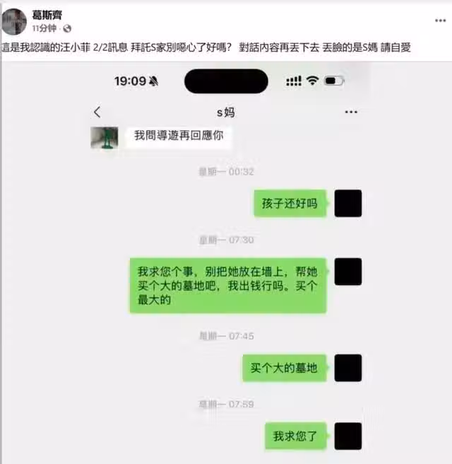 大S在日本病逝後,S媽第一時間聯繫了汪小菲,聊天記錄是2月份截圖的,上面顯示星期一,而我們已知大S是星期天離開人世的,也就是說她走後,S一家最先聯繫的就是汪小菲。