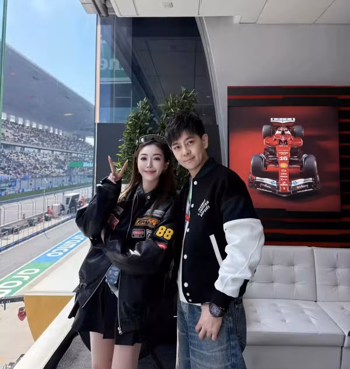 50歲林志穎在上海,去看賽車,老婆陳若儀露雙腿,在現場大出風頭
