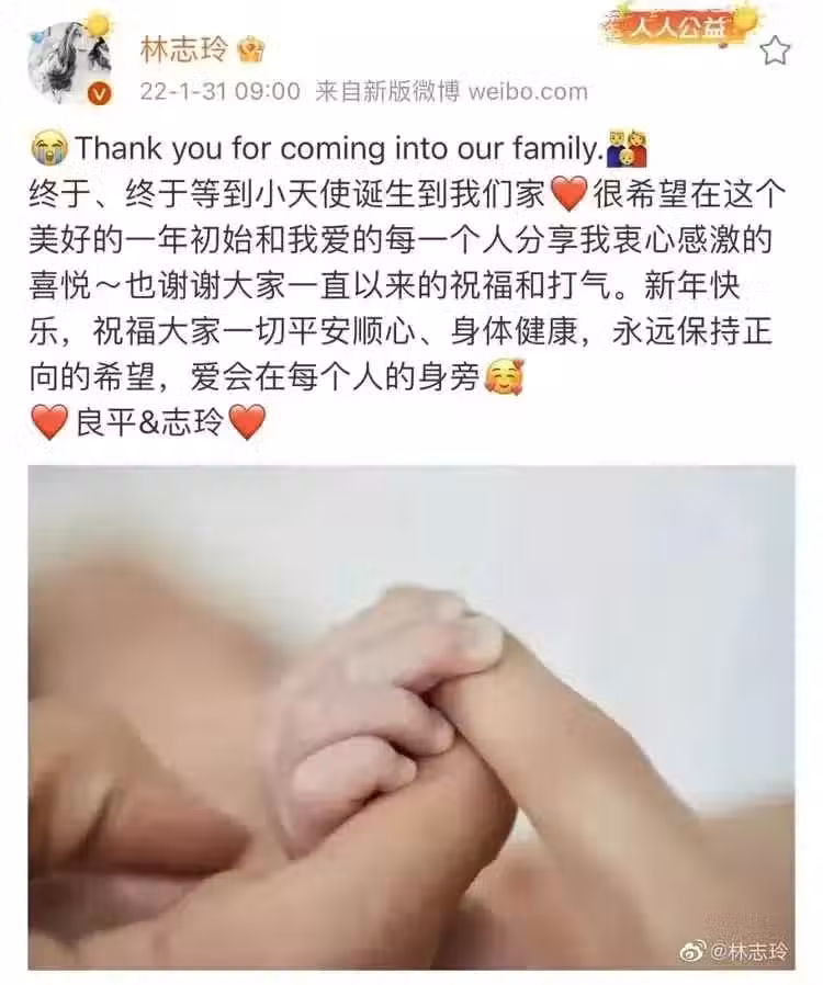 春節前夕林志玲官宣自己生了寶寶的消息