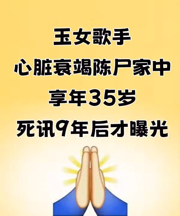 玉女歌手 心臟衰竭陳屍家中 享年35歲 死訊9年後才曝光