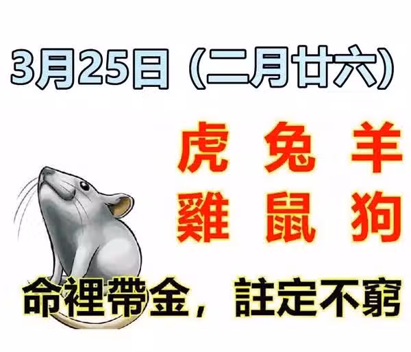 小運播報:2025年3月25日,星期二,農曆二月廿六。