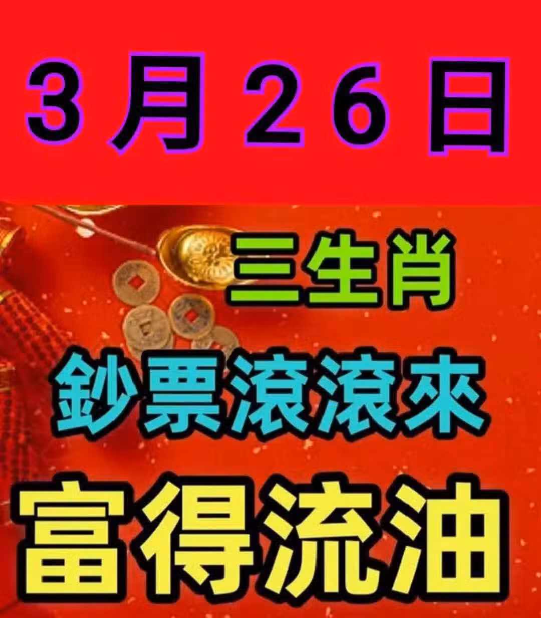 3月26日 三生肖 鈔票滾滾來 富得流油。