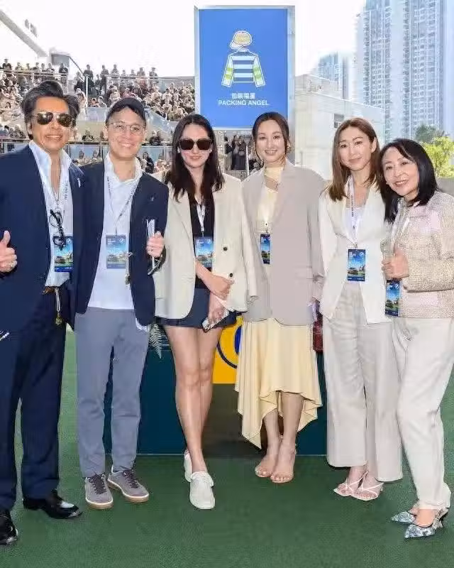 最近,高海寧在社交媒體上曬出一組馬場拉頭馬的照片,慶祝「包裝福星」在《寶馬香港打毗大賽》中拔得頭籌,而鏡頭裡那位身著西裝外套搭配短裙、露出逆天長腿的女人,瞬間搶走所有風頭——她就是49歲的港姐亞軍李嘉慧。