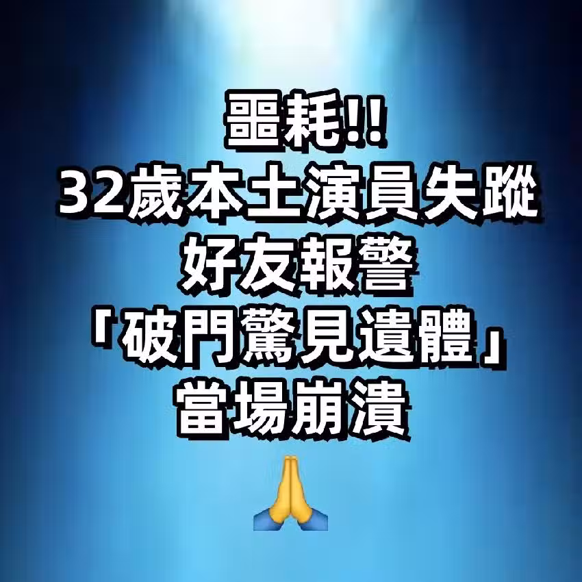 32歲本土演員失蹤!好友報警「破門驚見遺體」當場崩潰 #告別式時間曝光!