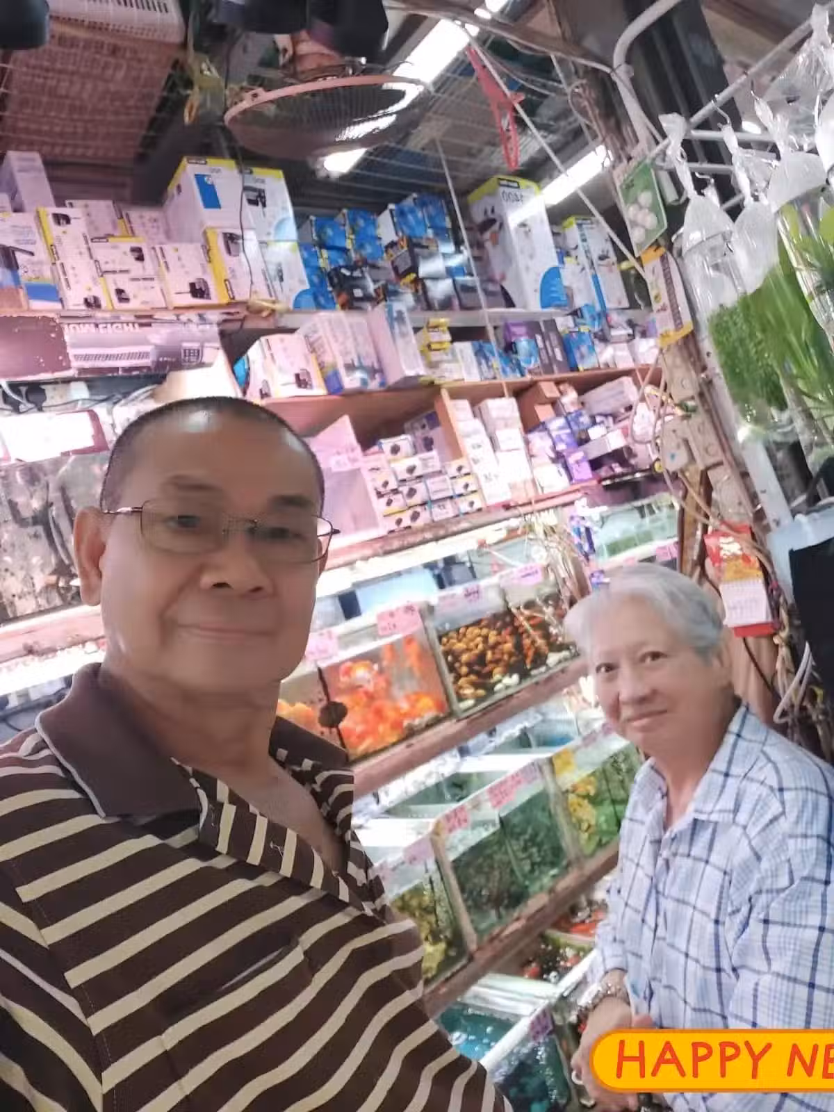 75歲洪金寶在香港,去一家店看金魚,穿著拖鞋出行,打扮不像明星