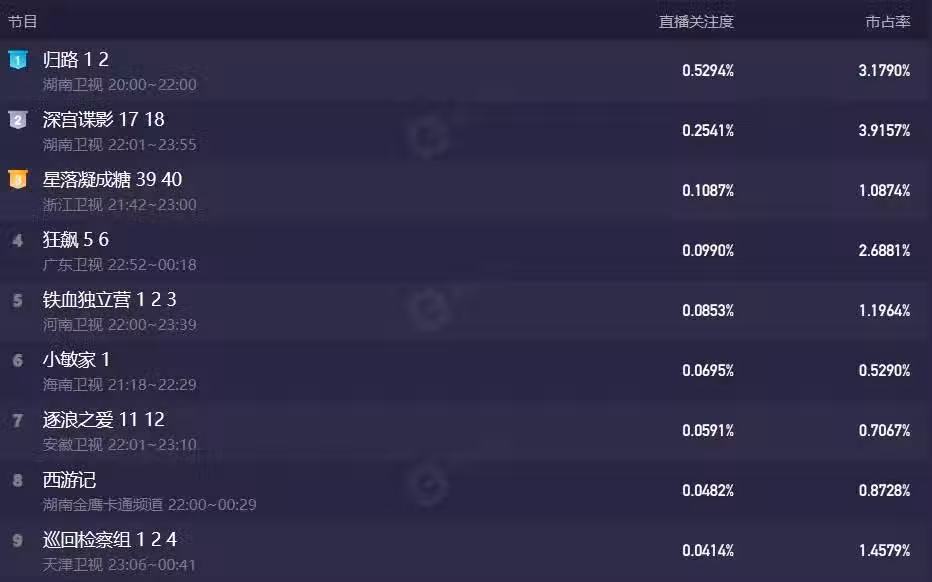 據悉,電視劇《歸路》首播上線兩集,就拿下了衛視黃金檔的收視率第一。很顯然,作為一部主打情感主線的作品,《歸路》成功吸引了一批觀眾入坑,成了湖南衛視手裡的王牌。