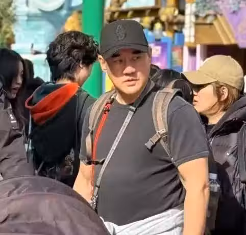 該網友偶遇時,吳大維正與朋友一起帶著孩子在迪士尼遊玩。畫面中的吳大維,穿著黑色T恤,戴著帽子,身上掛著手機,背著背包,一副超級奶爸的打扮。
