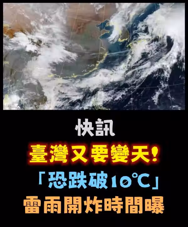 快訊/台灣又要變天!「恐跌破10℃」雷雨開炸時間曝......
